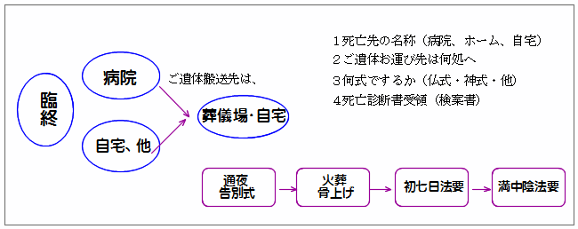 人が亡くなったら、何をどうするのか? お葬式までの段取り(下図参照)